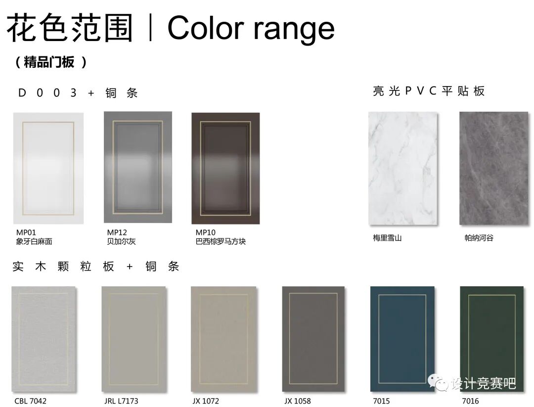 C、每個空間必須含定制柜類,全案的定制家具板材統(tǒng)一根據(jù)指定范圍花色選擇5種花色以內(柜體+門板)進行搭配。