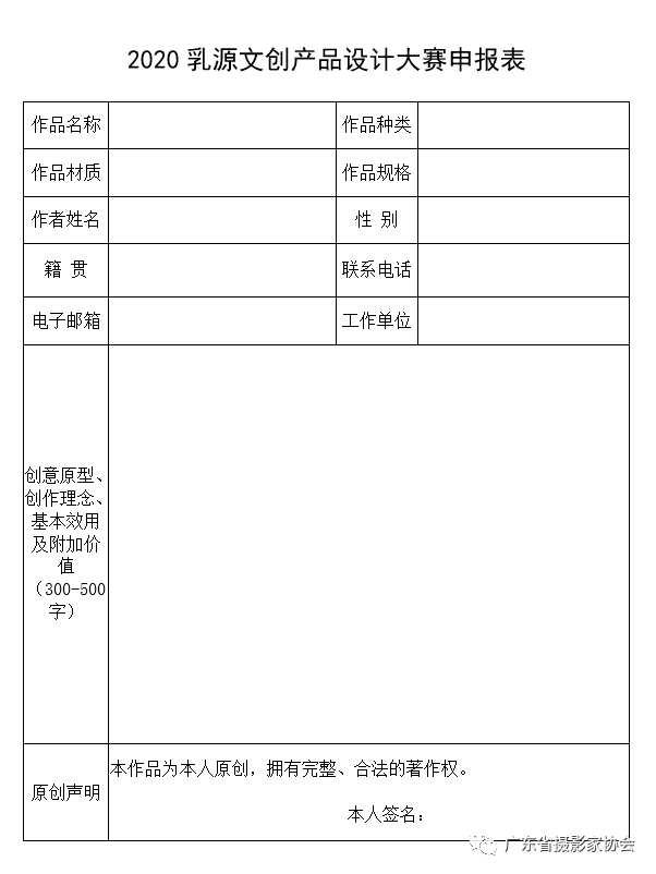 附件一:2020乳源文創(chuàng)產(chǎn)品設(shè)計(jì)大賽申報(bào)表