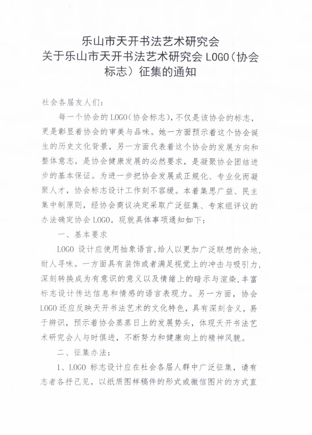 關(guān)于樂(lè)山市天開書法藝術(shù)研究會(huì)LOGO(協(xié)會(huì)標(biāo)志)征集的通知