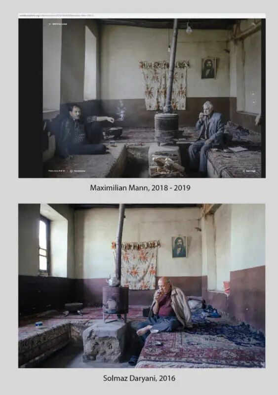 對(duì)此,也有記者聯(lián)絡(luò)到了德國(guó)攝影師Mann,并且Mann在近期也發(fā)表了一篇多達(dá)10頁(yè)的聲明(英文版聲明原文可以點(diǎn)擊這里查看)。Mann在聲明中表示他在前往拍攝前也做了許多功課,的確也看到過(guò)這位Daryani的作品,但也有多達(dá)十余位其他攝影師的作品。Mann在拍攝期間與當(dāng)?shù)氐姆g和向?qū)б煌盍税酥艿臅r(shí)間,拍攝了超過(guò)1萬(wàn)張照片素材。而提交到荷賽的作品只有10張。如果展開(kāi)觀看全部作品,將會(huì)發(fā)現(xiàn)這些作品是更為多樣,甚至是完全不同的。Mann還提供了一些他收集到的其他攝影師拍攝的類(lèi)似的畫(huà)面: